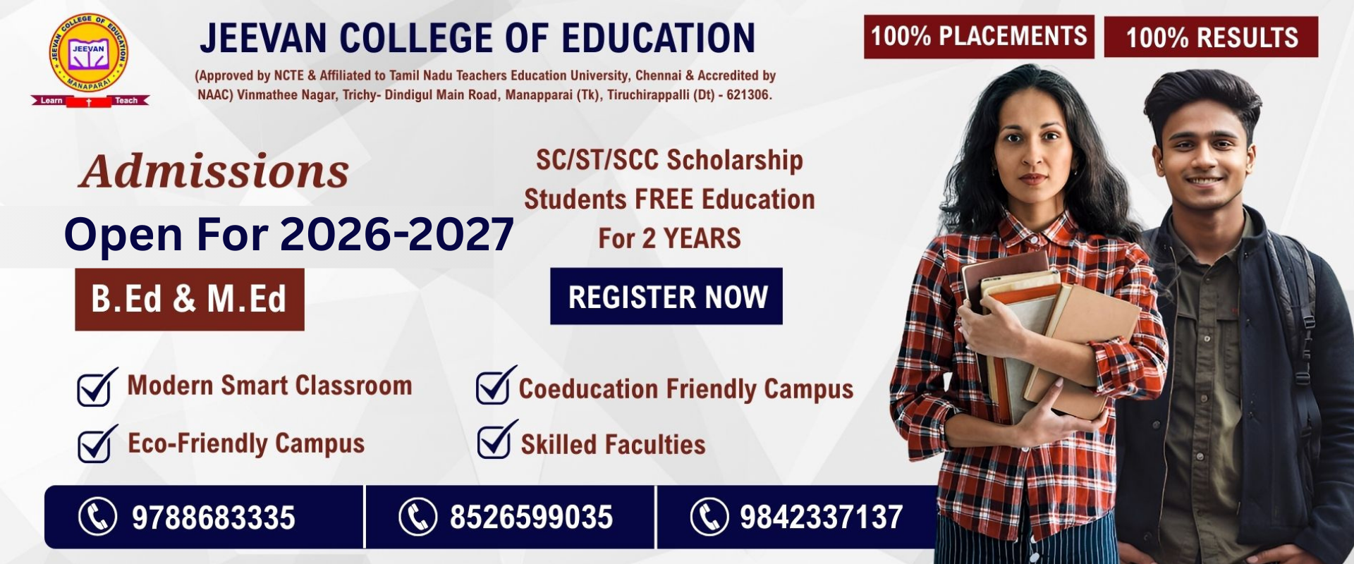 SC/ST/SCC Scholarship students are eligible for 2 years of FREE education in the B.Ed. and M.Ed. program. Empowering future educators through inclusive opportunities and government-supported scholarships.